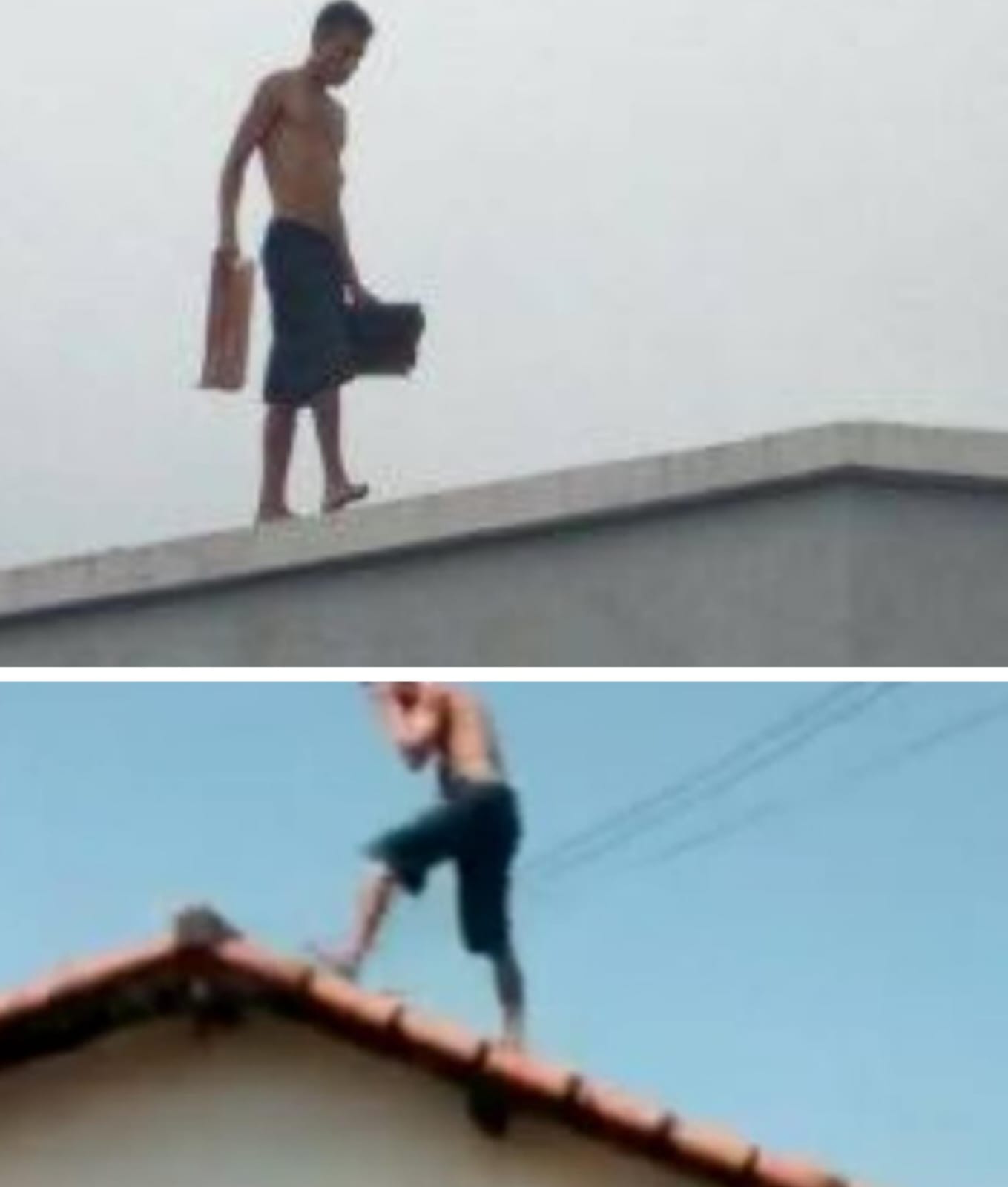 Um homem sem camisa, calça jeans, e segundo informações surdo e mudo, esteve andando pelo telhado de alguns moradores.