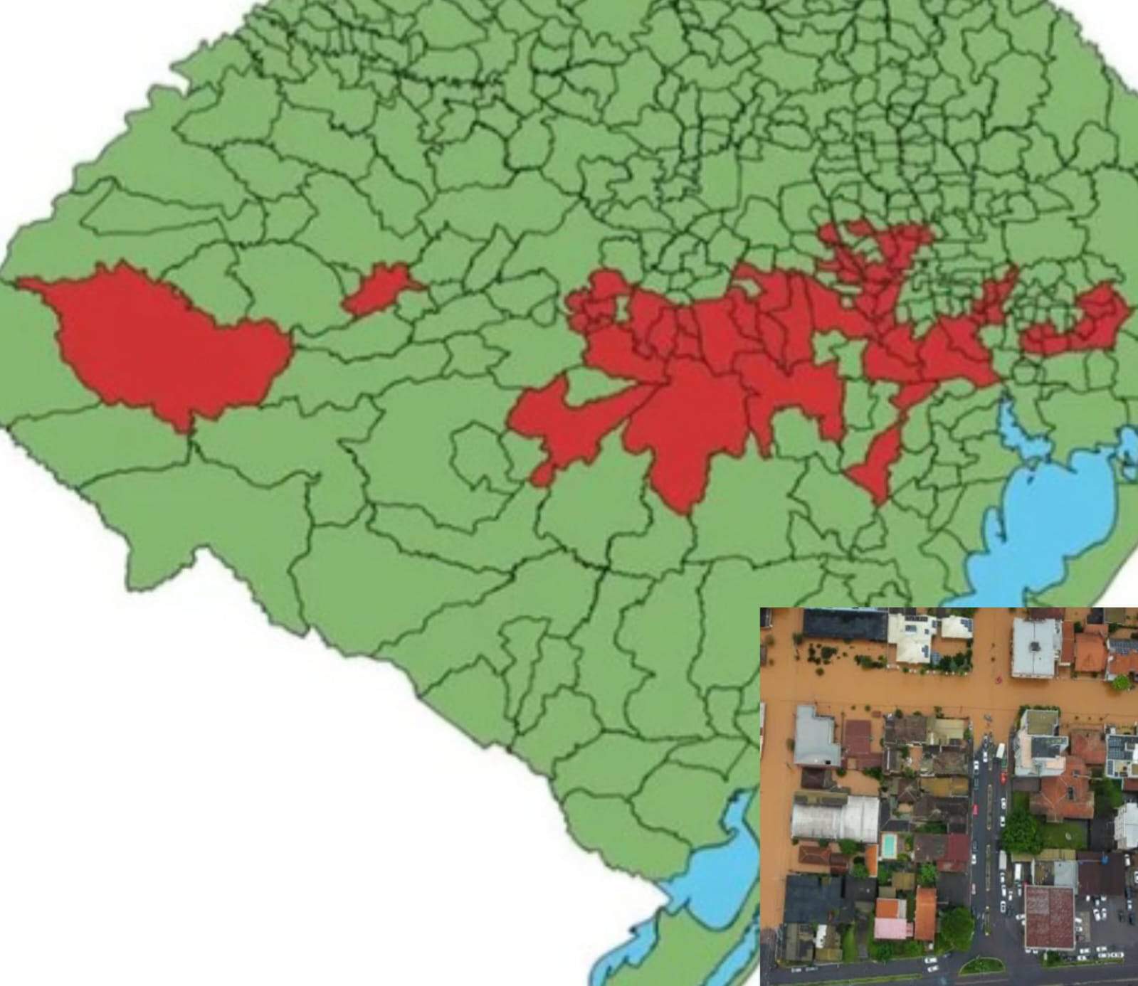 Desde o início das fortes chuvas na semana passada até agora, 80% das cidades do Rio Grande do Sul foram afetadas em algum nível, conforme o último boletim da Defesa Civil estadual — das 497 cidades do estado, apenas 96 não sofreram impactos do desastre.