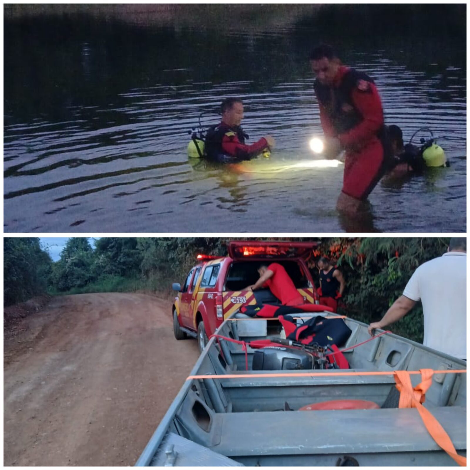 Ao chegar no local, com a utilização de técnicas de salvamento aquático e mergulho, a vítima foi retirada à 10 metros de profundidade e 15 metros da margem do lago aproximadamente, sem vida, ficando aos cuidados e custódia do Instituto Médico Legal (IML).