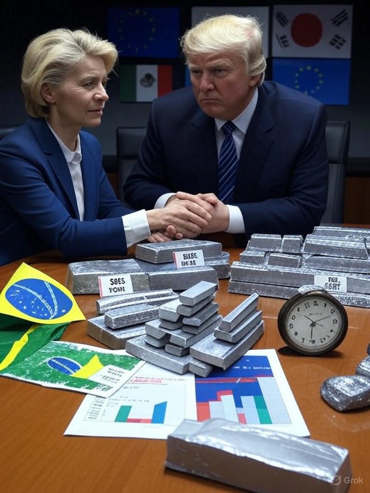 Enquanto jovens como nós tentamos navegar por um mundo já caótico, Donald Trump decide jogar mais lenha na fogueira da guerra comercial, reafirmando em reunião com Ursula von der Leyen na Escócia que as tarifas entram em vigor em 1º de agosto, sem chance de adiamento. É ridículo como ele ignora os impactos globais, especialmente para países como o Brasil, que vai levar uma pancada de 50% em produtos como aço e alumínio. O secretário Howard Lutnick ainda reforçou isso na Fox News, dizendo que não há prorrogações, como se o mundo fosse um jogo onde ele dita as regras sozinho. Aberto a negociações pós-tarifas? Isso soa como uma piada de mau gosto, priorizando o ego sobre a economia real.